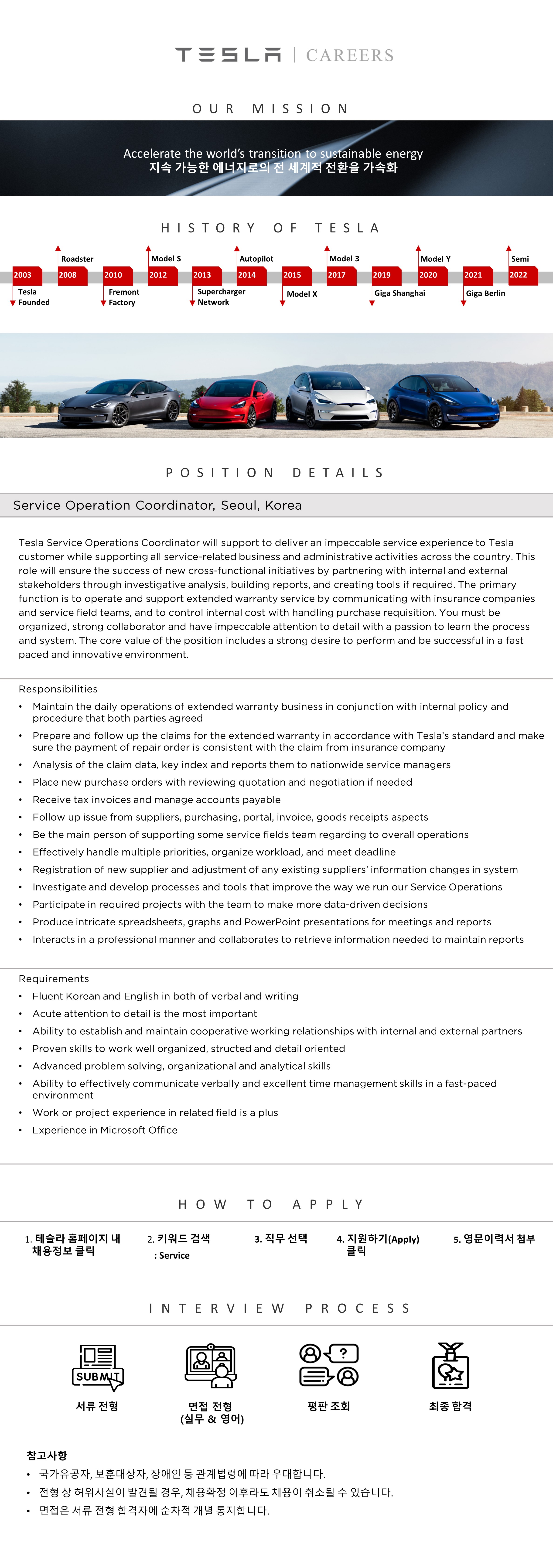 [Tesla Korea] Service Operations Coordinator, Seoul, Korea