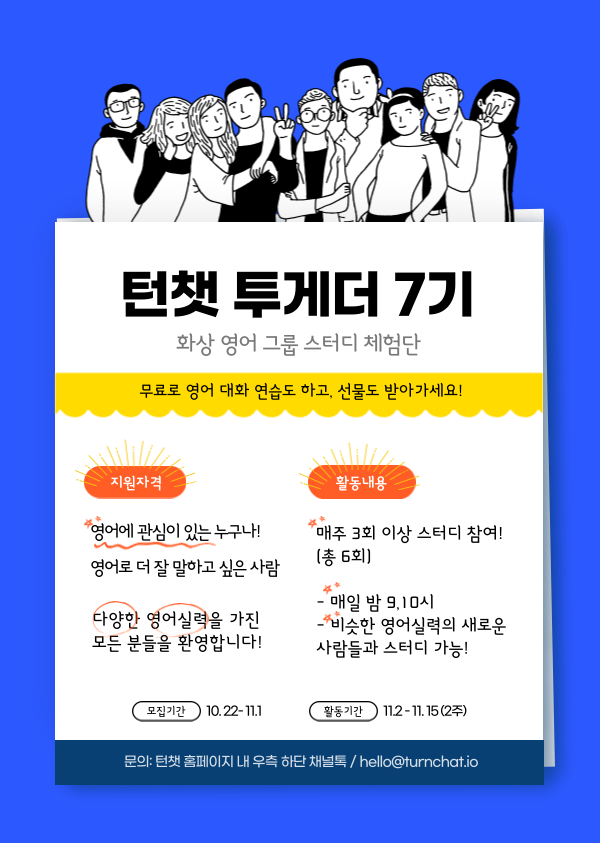 화상 영어 그룹 스터디 턴챗 무료 체험단 턴챗 투게더 7기 모집