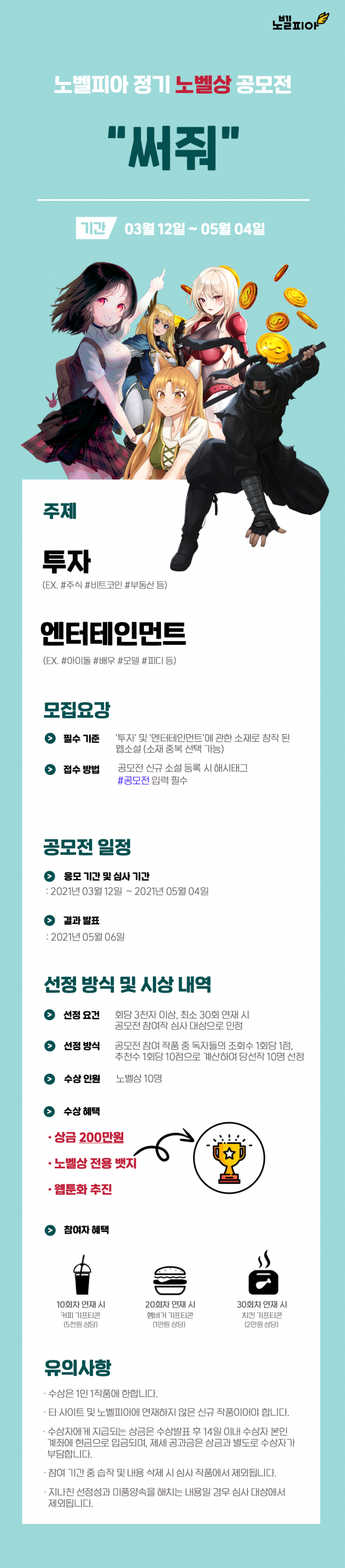 ※단 타 사이트 및 노벨피아에서 연재하지 않은 신규 작품이어야 합니다.