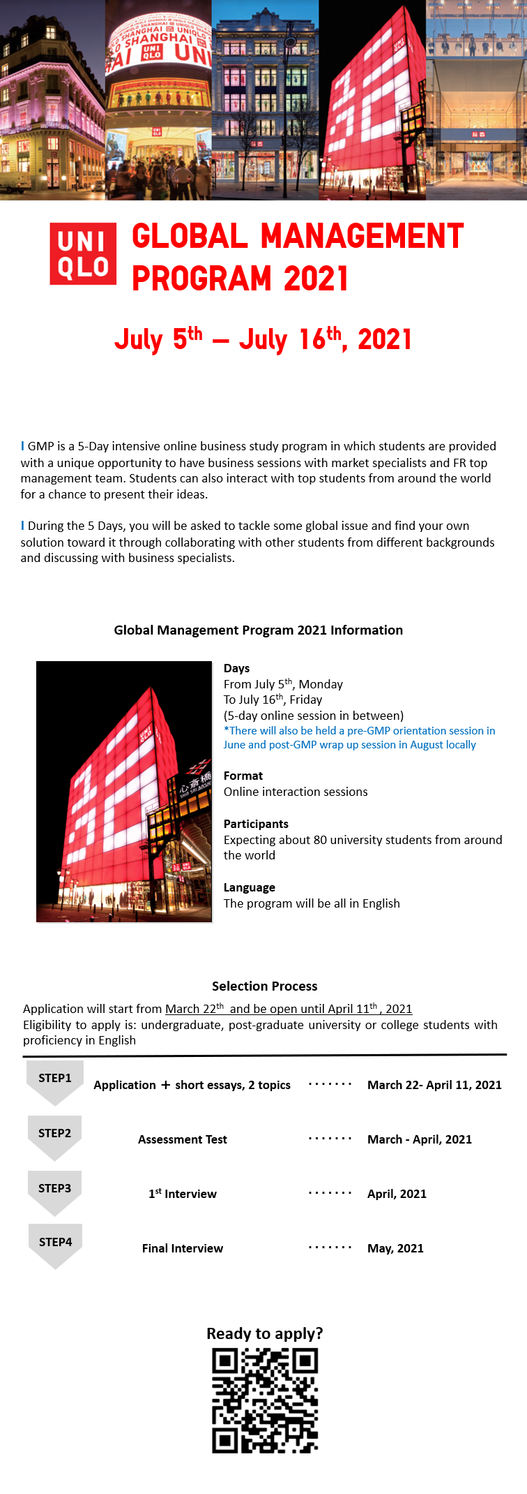 Should you have any queries, please contact us through email: Global_Management_program_office@fastretailing.com