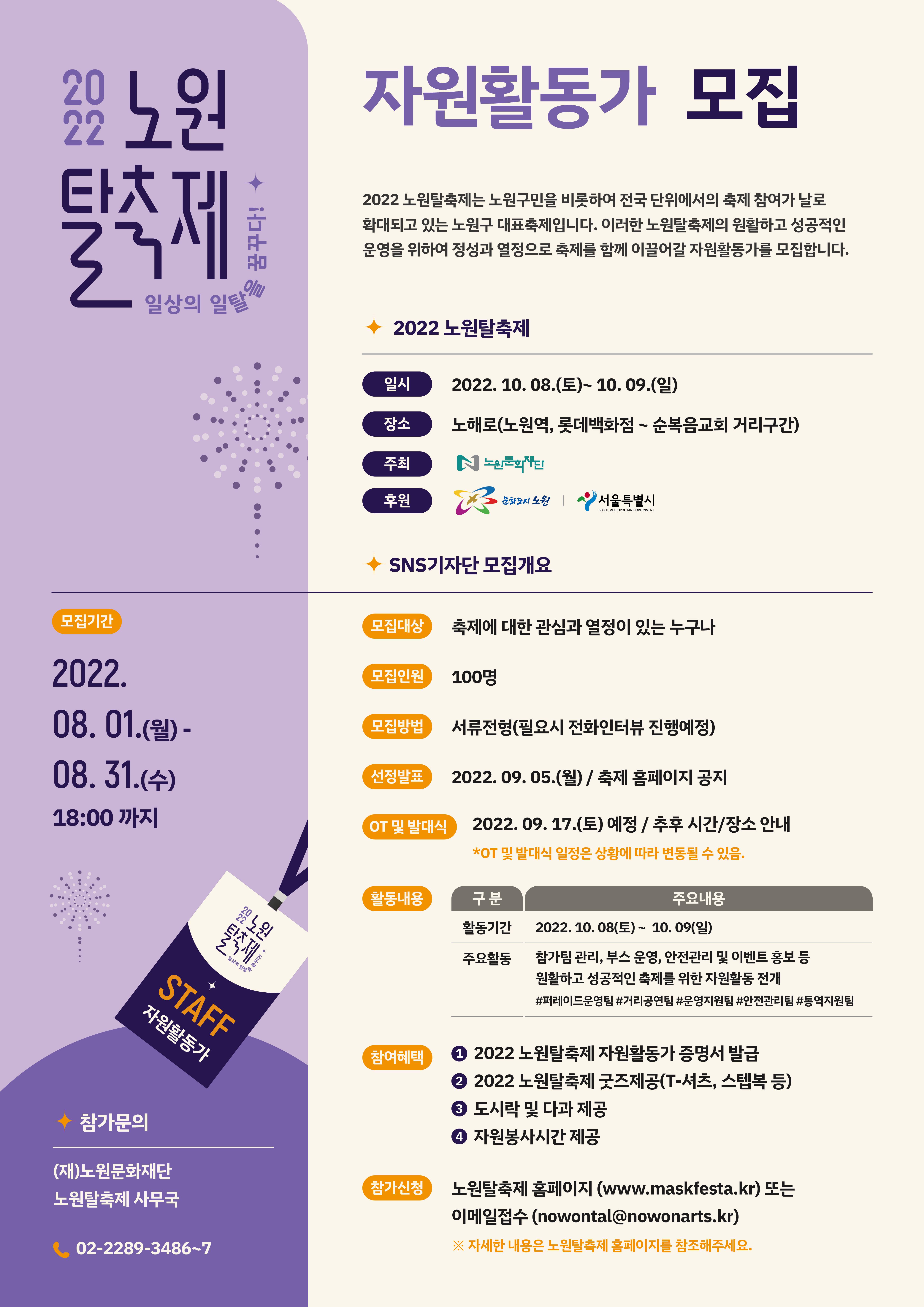 - 활동명칭: 2022 노원탈축제 자원활동가