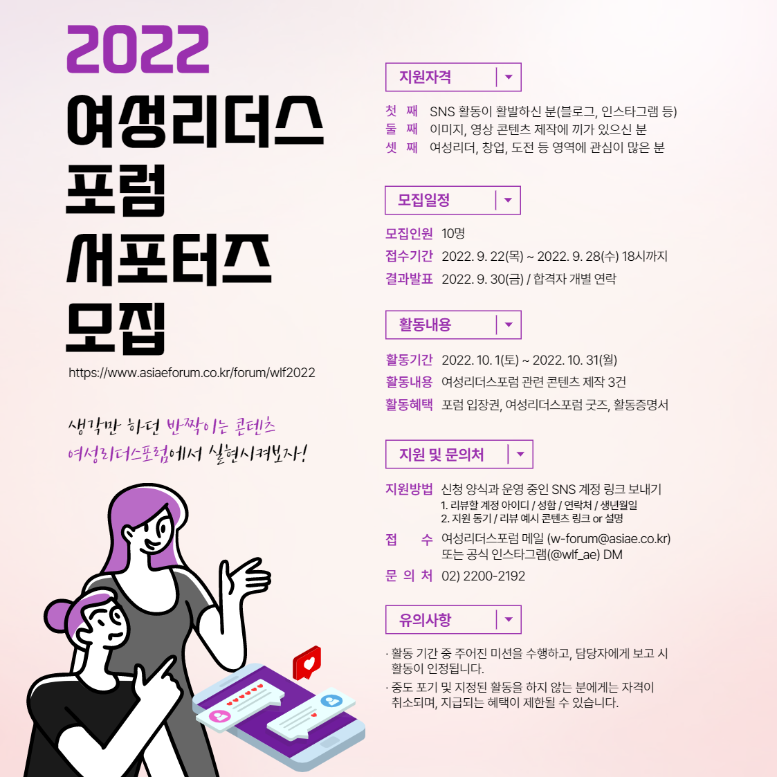[아시아경제] 2022 여성리더스포럼 서포터즈 모집