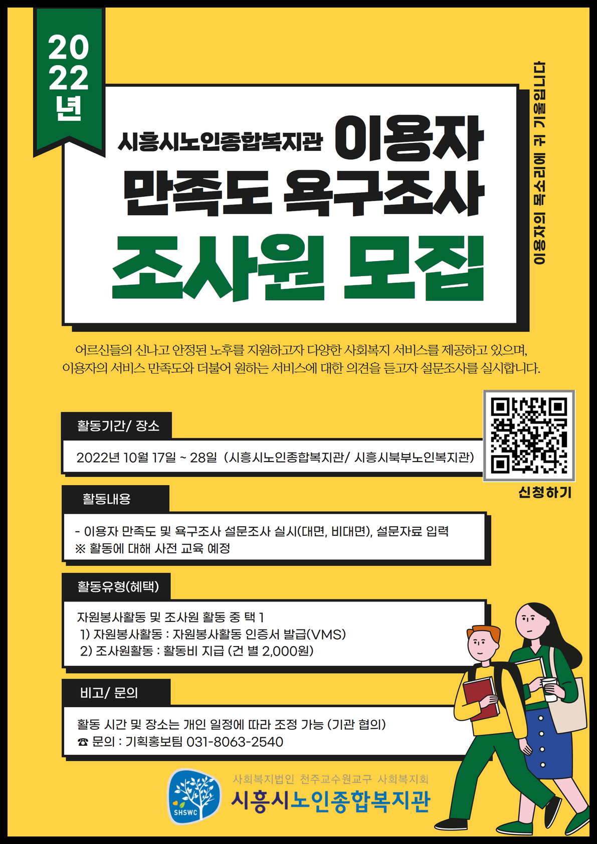 시흥시노인종합복지관 2022년 이용자 만족도 / 욕구조사 서포터즈 모집