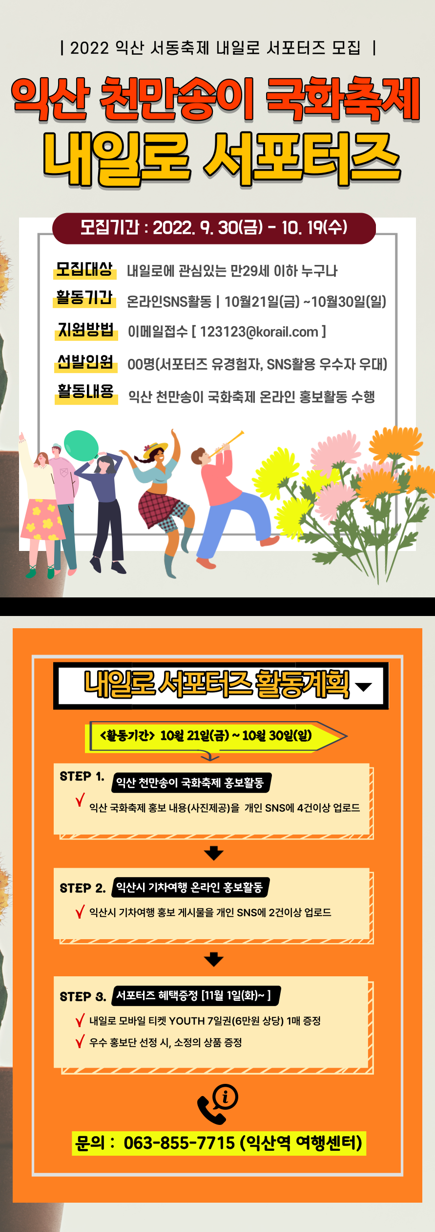 - 활동 기간 내 여행센터에서 제공하는 익산 국화축제 및 익산시 기차여행 홍보자료를 활용해 온라인 홍보 게시글(6건 이상) 작성