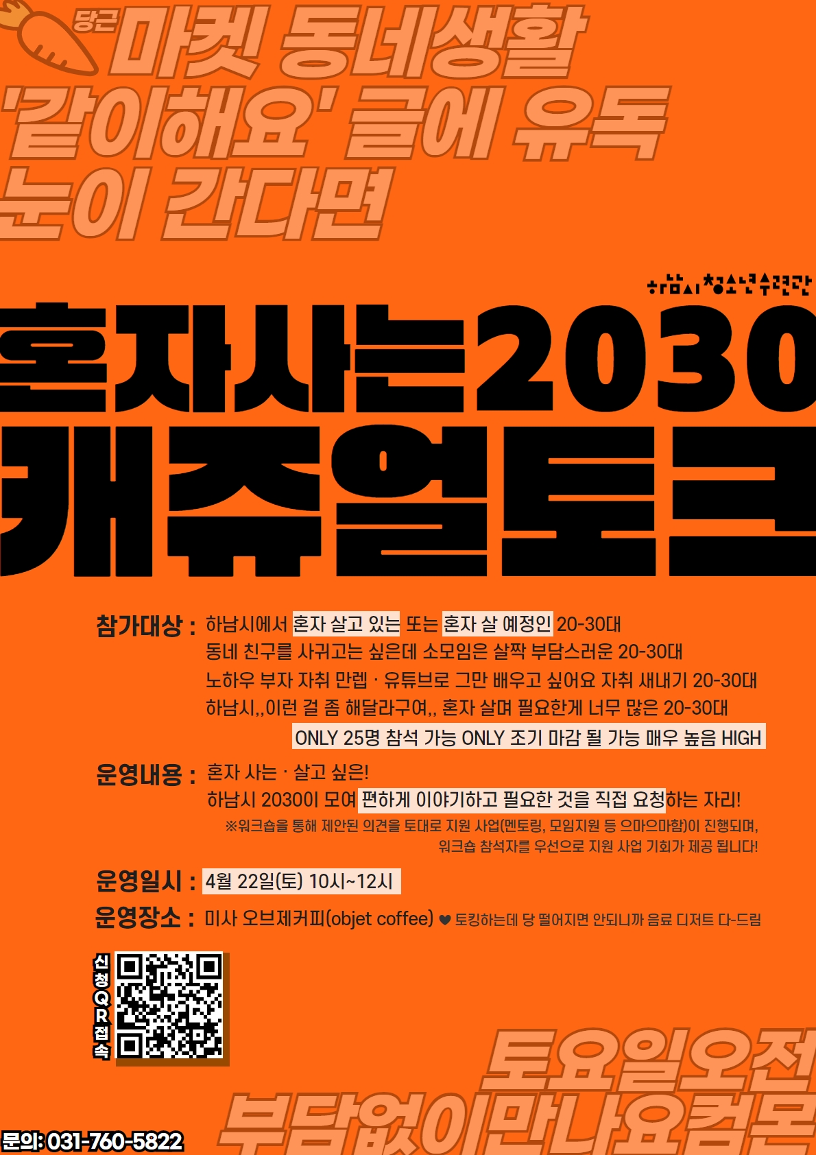혼자 사는 2030 캐쥬얼 토크(네트워크 사업) 참가자 모집