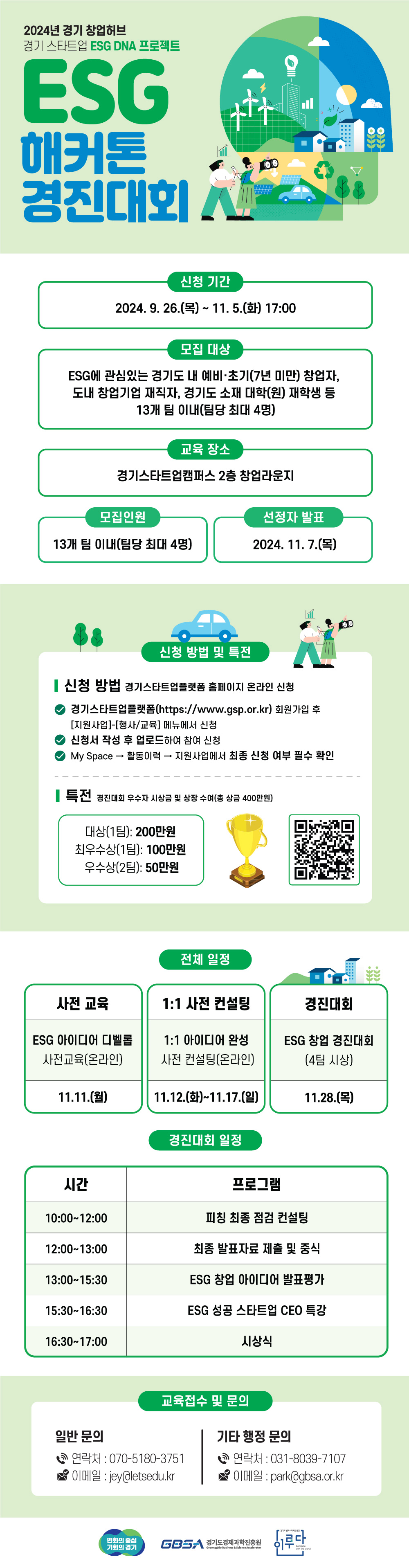 [경기도경제과학진흥원] 2024년 경기 창업허브 경기 스타트업 ESG DNA 프로젝트 "ESG 해커톤 경진대회" 참가자 모집