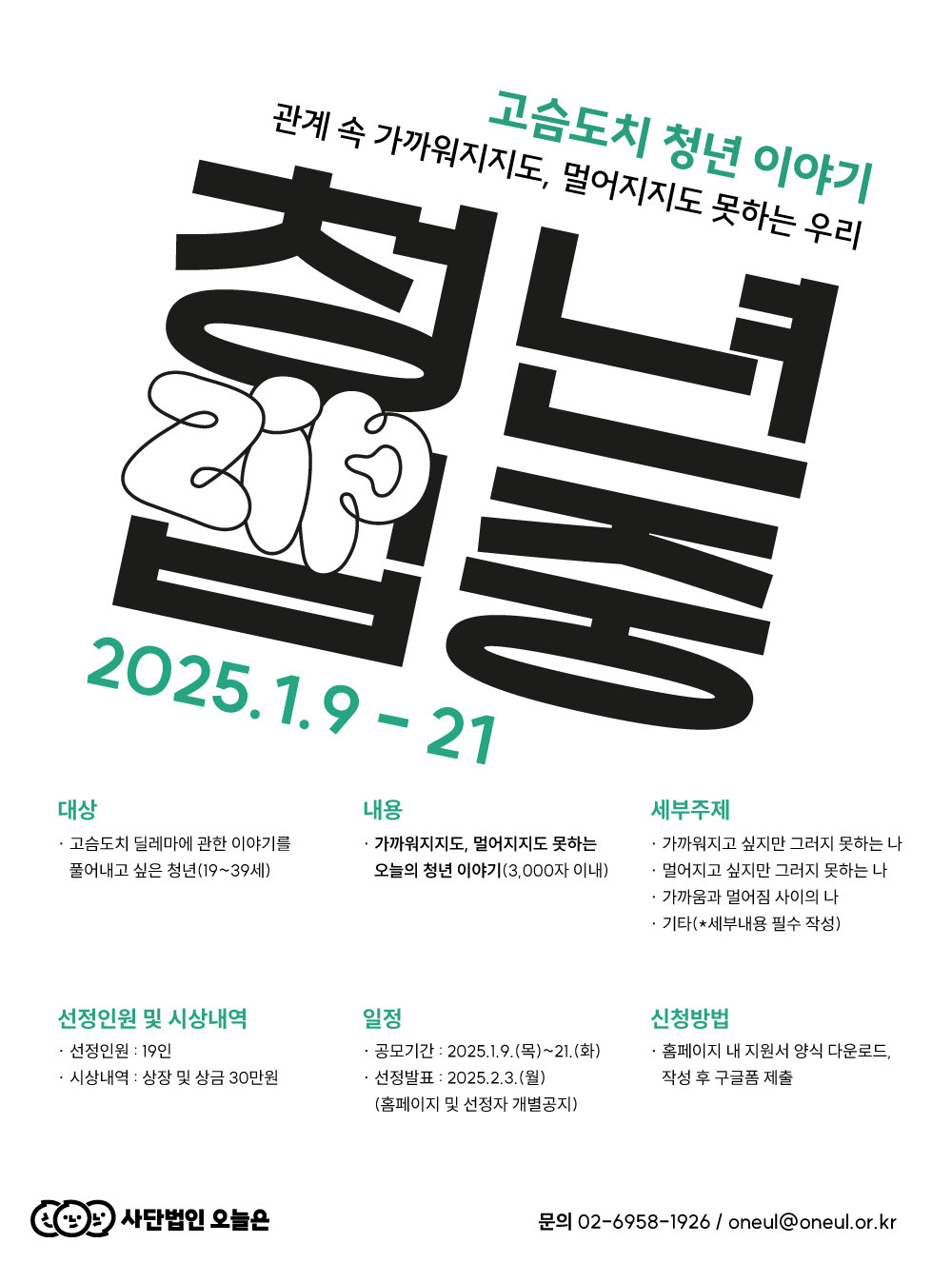 🦔 공모내용 : 가까워지지도, 멀어지지도 못하는 오늘의 청년에 관한 글(공백 포함 3,000자 이내)