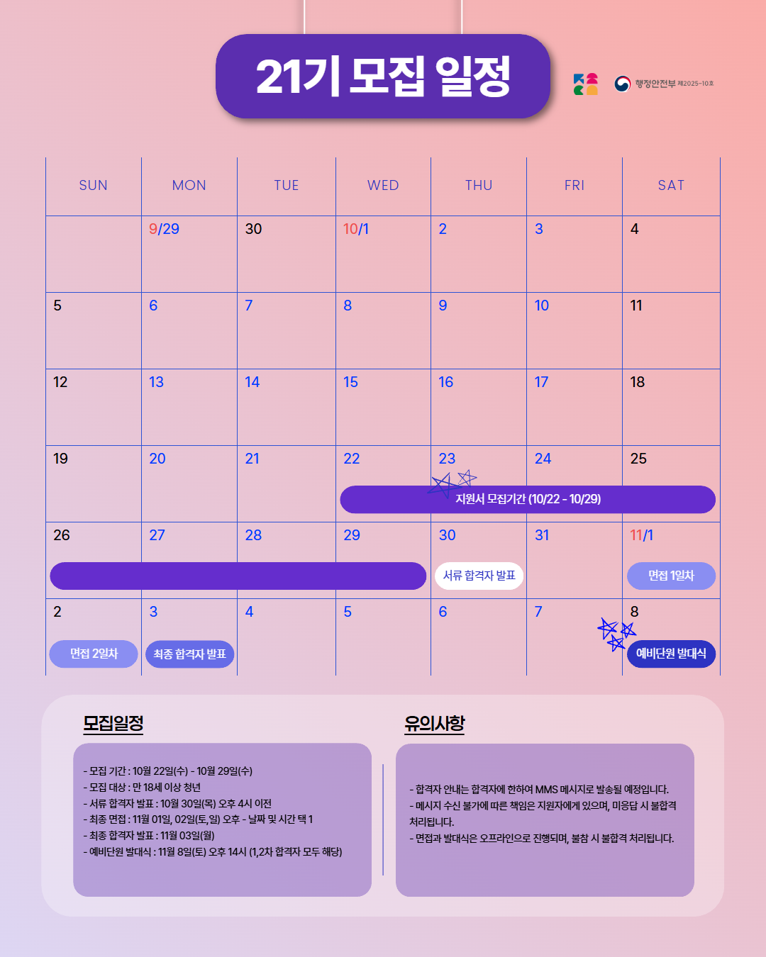 - 모집 기간: 10/22(수) ~ 10/29(수) 자정