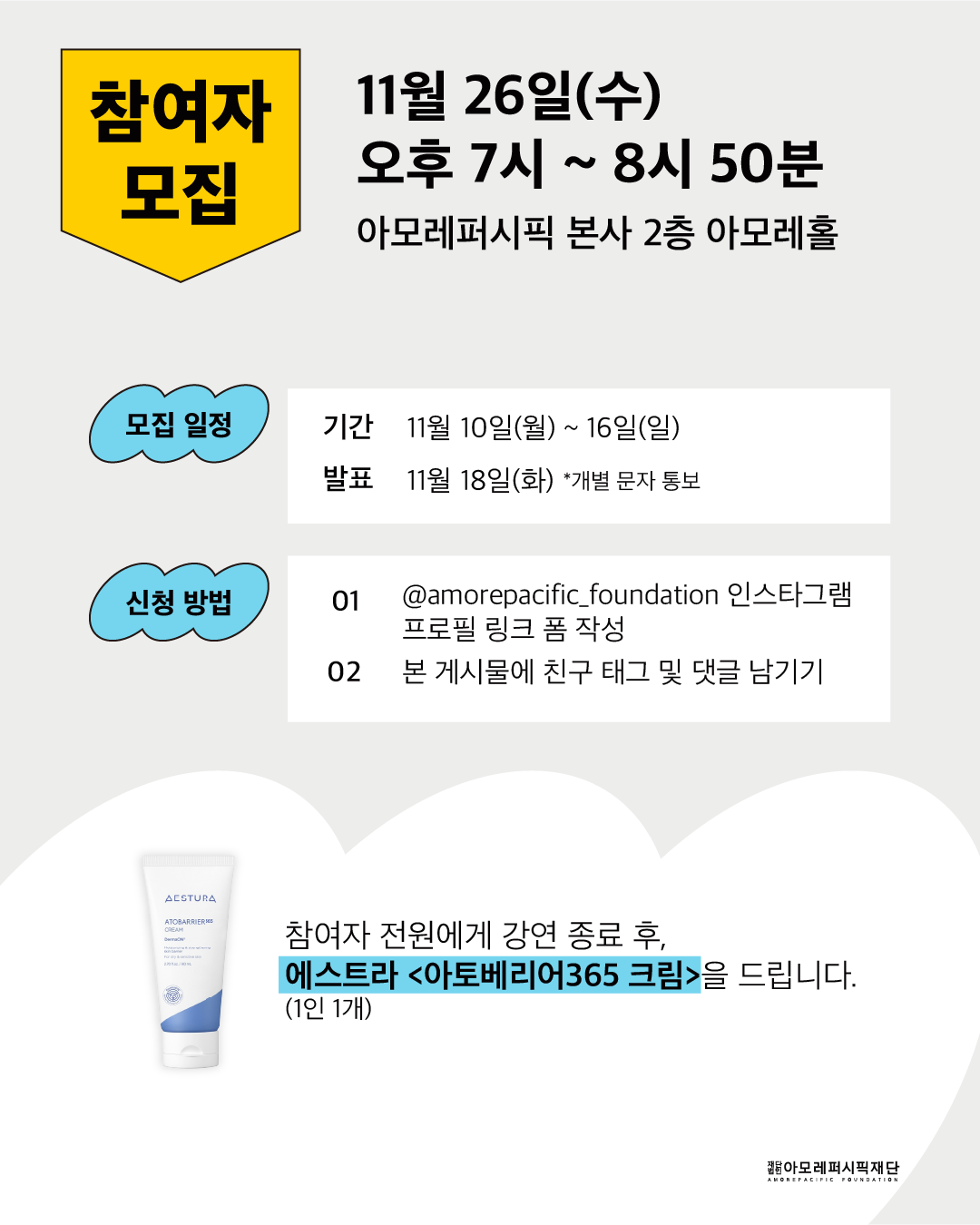 아모레퍼시픽재단의 제3회 장원(粧源) 특강에 여러분을 초대합니다🎤