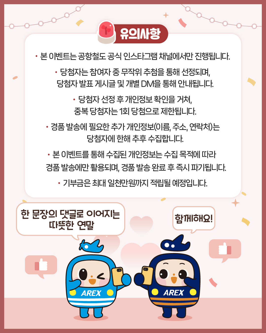 ๐ ๋ณธ ์ด๋ฒคํธ๋ ๊ณตํญ์ฒ ๋ ๊ณต์ ์ธ์คํ๊ทธ๋จ์์๋ง ์ฐธ์ฌํ ์ ์์ด์.