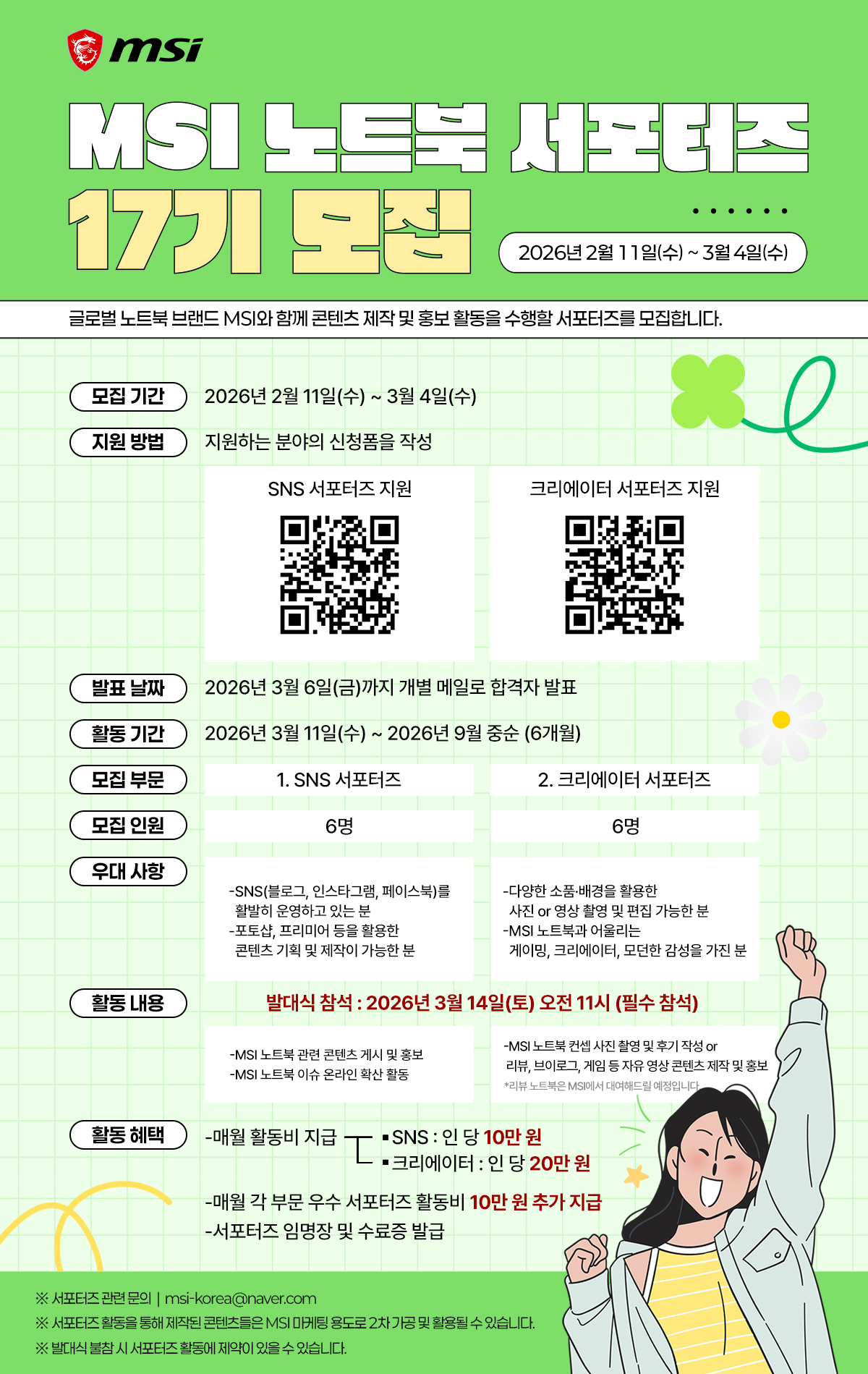 ※ 서포터즈 관련 문의 : msi-korea@naver.com