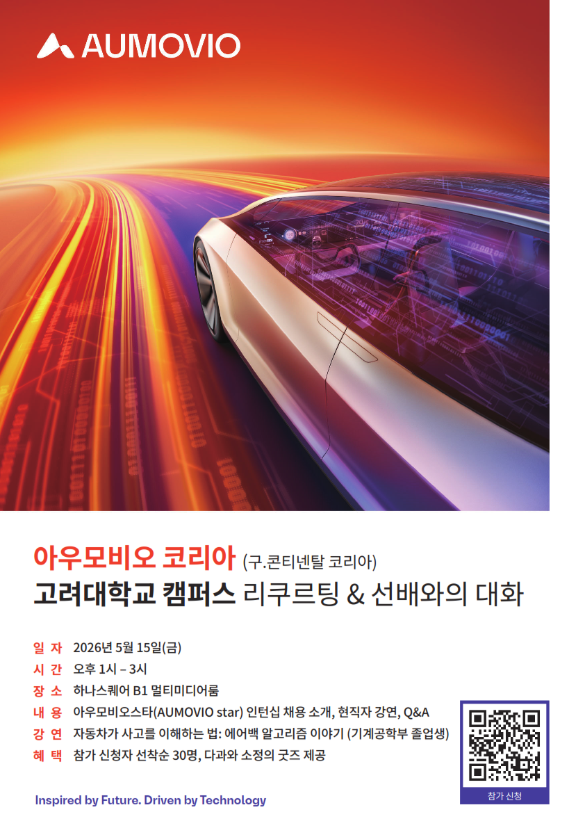 미래 모빌리티를 선도하는 아우모비오 코리아(구. 콘티넨탈 코리아)가 고려대학교를 찾아갑니다.