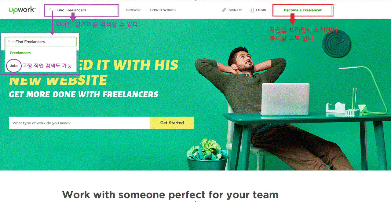 upwork는 전 세계에서 가장 큰 일자리 정보 공유 사이트이다. ( 변경 이전의 명칭인 oDesk로 더 잘 알려져 있다. ) 누군가는 upwork에서는 어떤 일이든, 모두 구인 구직이 가능하다고 말하기도 한다. 번역, 녹음, 그림 그리기, 음식 만드는 법 알려주기 등의 작은 일에서부터 컴퓨터 프로그램 개발까지 다양한 일을 의뢰하는 사람들과 그 일을 하고자 하는 사람이 upwork를 통해 연결된다. 온라인을 통해 소통하고, 일하기 때문에 전 세계 어디에 있는 사람도 이뢰인이 될 수 있고, 일의 수행자가 될 수 있다.