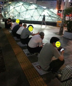 작년 여름, 강의를 마친 늦은 시간에 현금인출을 위해 강남역 앞의 은행에 갔다. 그런데 은행 앞에 신문지를 깔고, 한 줄로 길게 앉아 핸드폰을 열심히 들여다보시는 분들이 계셨다.