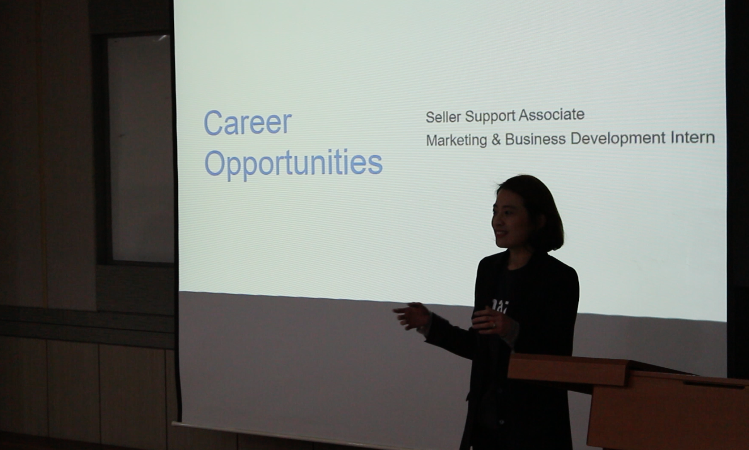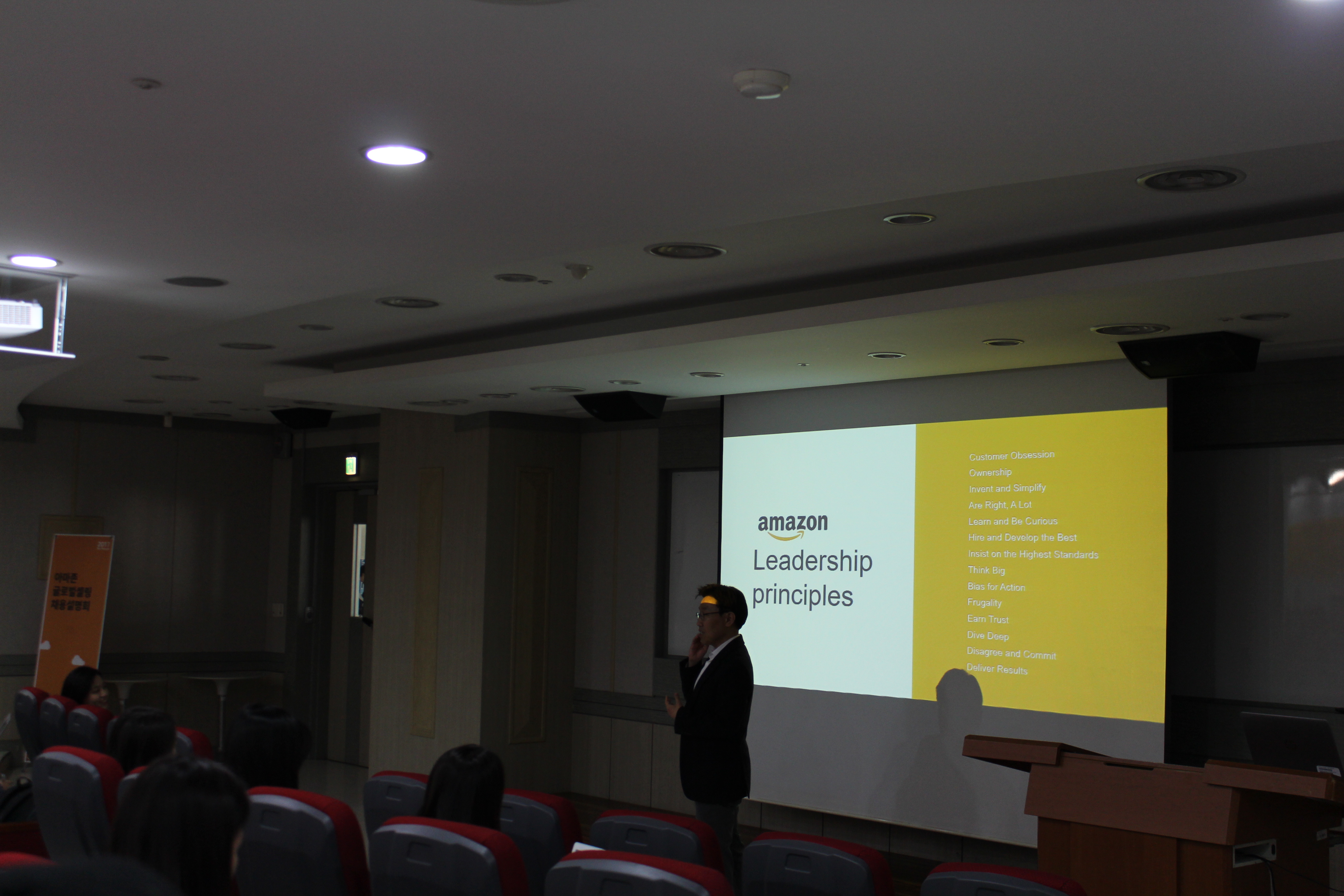 [아마존 서비시즈 코리아 글로벌셀링 채용 담당, Amy님]집중한 학생분들의 눈빛을 볼 수 있었는데요, 인상 깊었던 것은 "우리 기업 인재상은 이러이러한 사람입니다."보다 "아마존 글로벌셀링은 이러이러한 사업을 확장하고 있는데 어떤 사람이 필요할까요?"라고 학생들이 스스로 생각해 볼 수 있는 여지를 주셨습니다. 또 즉석에서 인턴 경험 했다고 손 든 학생분께 "인턴십을 통해 어떤 Acheivement를 얻으셨나요?"라는 질문을 해, 학생분을 당황케 하기도 하셨는데요, 가장 기본이 되는 질문이니만큼 꼭 준비해야겠습니다! 끝으로 가장 좋은 스펙은 다른 것이 아니라 다양한 경험인 것 같다는 말씀으로 마무리 해 주셨습니다.