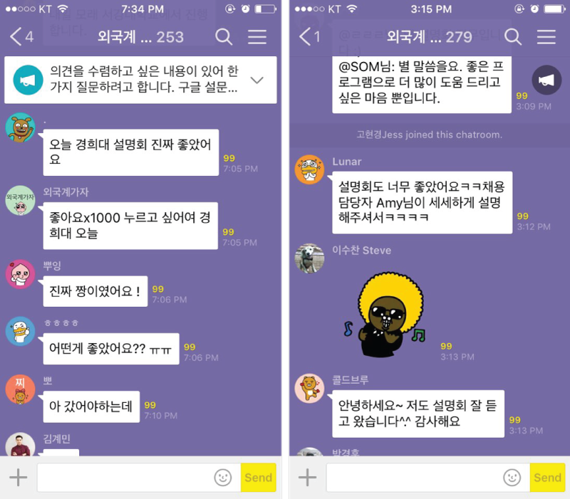 마지막으로 Q&A 시간을 가졌는데요, 아마 경희대학교에서 반응이 가장 뜨거웠던 이유 중 하나가 바로 이게 아니었나 싶을 정도로 상당히 많은 질문과 답변이 오고 갔습니다. 정말 관심이 느껴지는 학생 분들의 질문에 대표님, Amy, Jason 모두 열의를 다해 답변해 주신 것이 참 인상적이었습니다. 그 중 중복되지 않으면서 중요한 두 가지 정도의 Q&A를 추렸습니다.