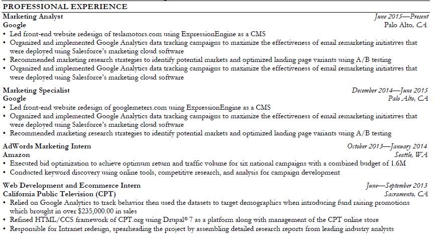 경력사항은 영문이력서의 '꽃'이라고 할 수 있을만큼