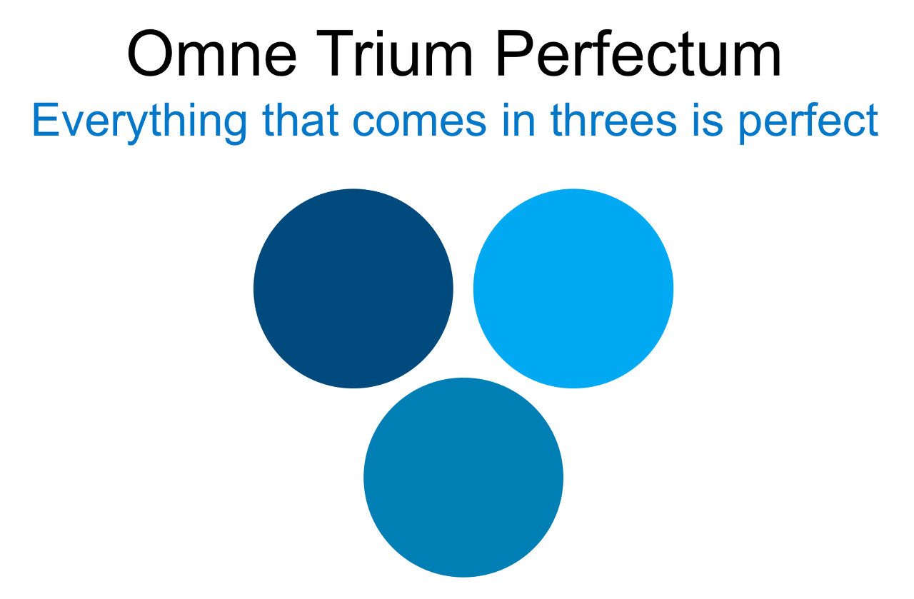 라틴어로 '셋으로 이루어진 것은 모두 완벽하다' 란 뜻이다.