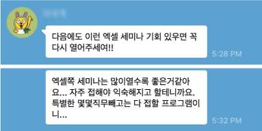 "실무에 대한 준비를 하고 싶어서 엑셀 세미나를 신청했어요."