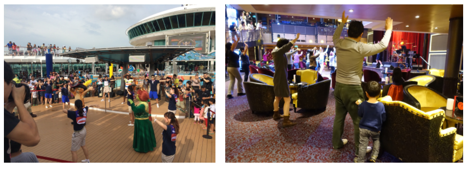 또한 크루즈 안은 연령층에 맞는 다양한 액티비티, 시설이 갖추어져 있으며, 이를 또 전문적으로 맡아서 관리하는 Cruise Director(크루즈 디렉터) 가 있어서 승객과 함께 즐기는 크루즈, 유쾌한 크루즈를 만들어준다.