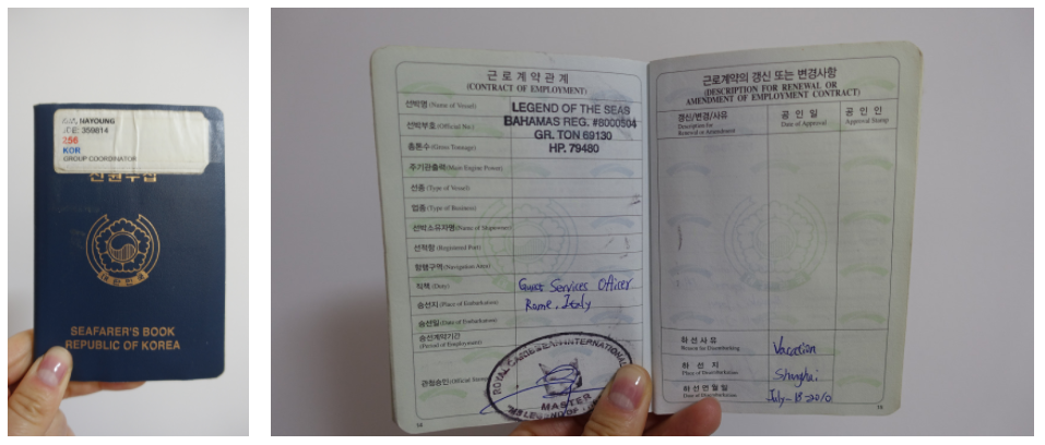 -바다의 신분증, 나의 선원수첩. 선원수첩에는 내가 선박에서 승하선 하는 모든 기록이 담겨있다. 여권처럼. -