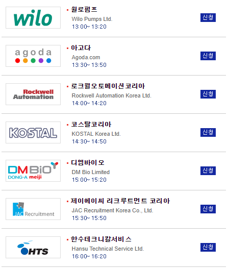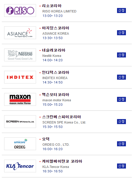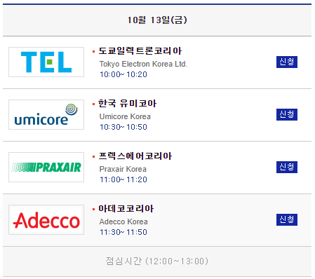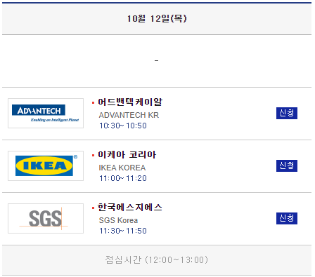 이상 둘째날, 10월 13일에 진행되는 채용설명회입니다.
