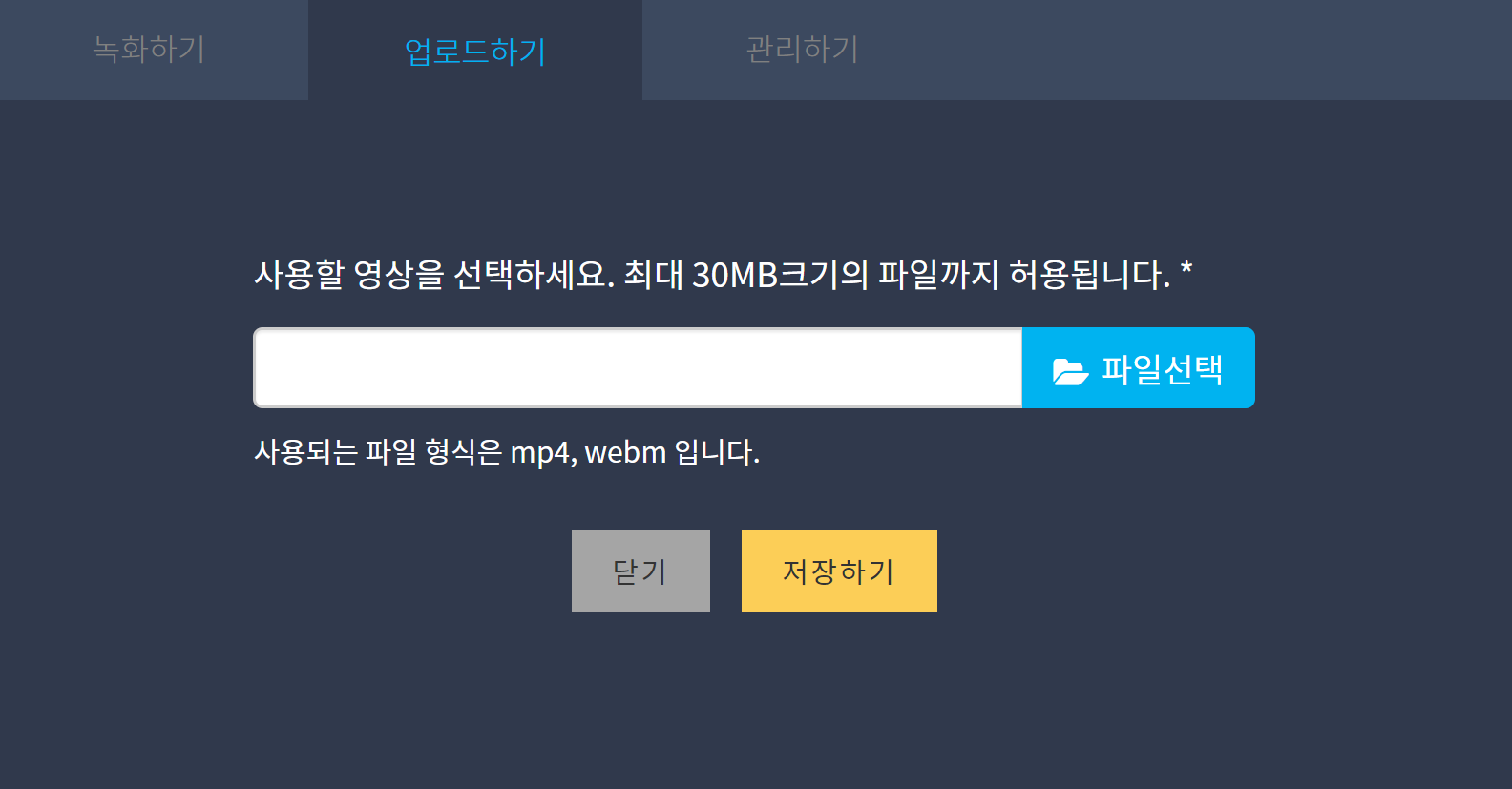 * 업로드시 가능한 영상 파일 확장자: mp4, webm