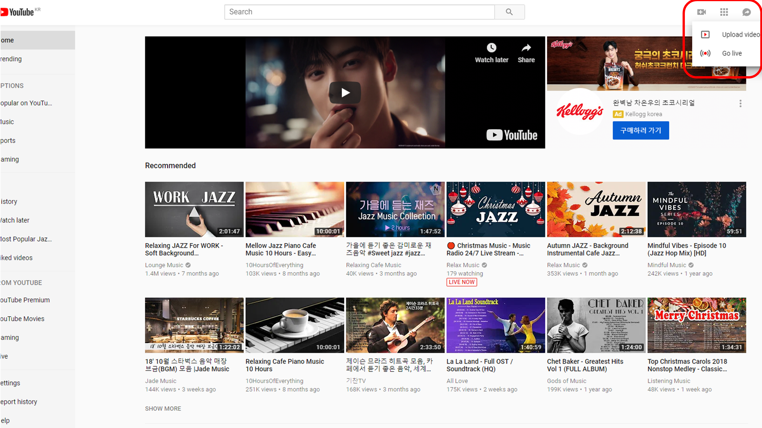 먼저 유튜브(www.youtube.com) 로 들어가 로그인해 주시기 바랍니다