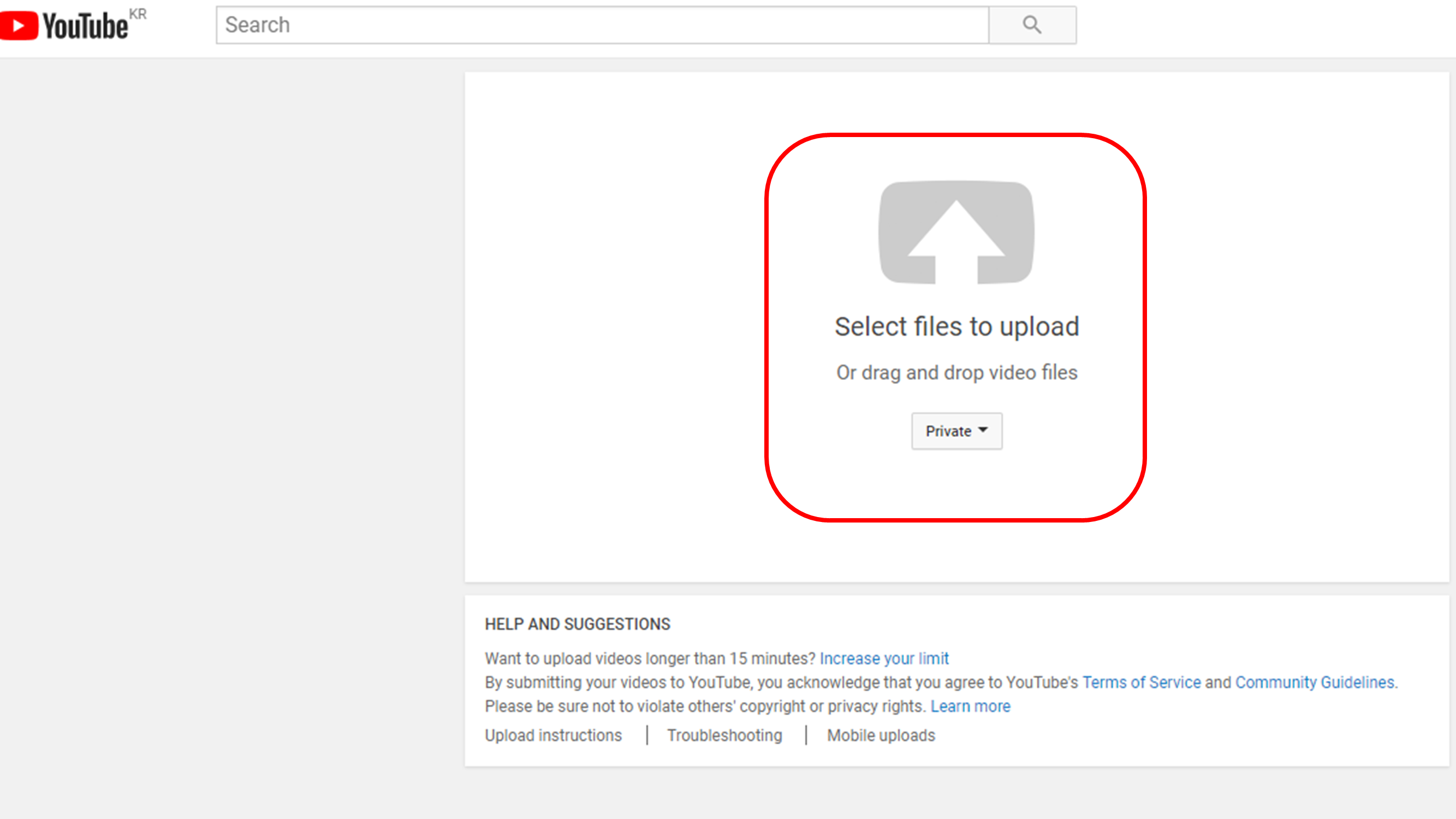 영상업로드 화면에서 비공개 혹은 Private 으로 설정한 뒤 동영상 파일을 드래그 해서 올려주시면 됩니다