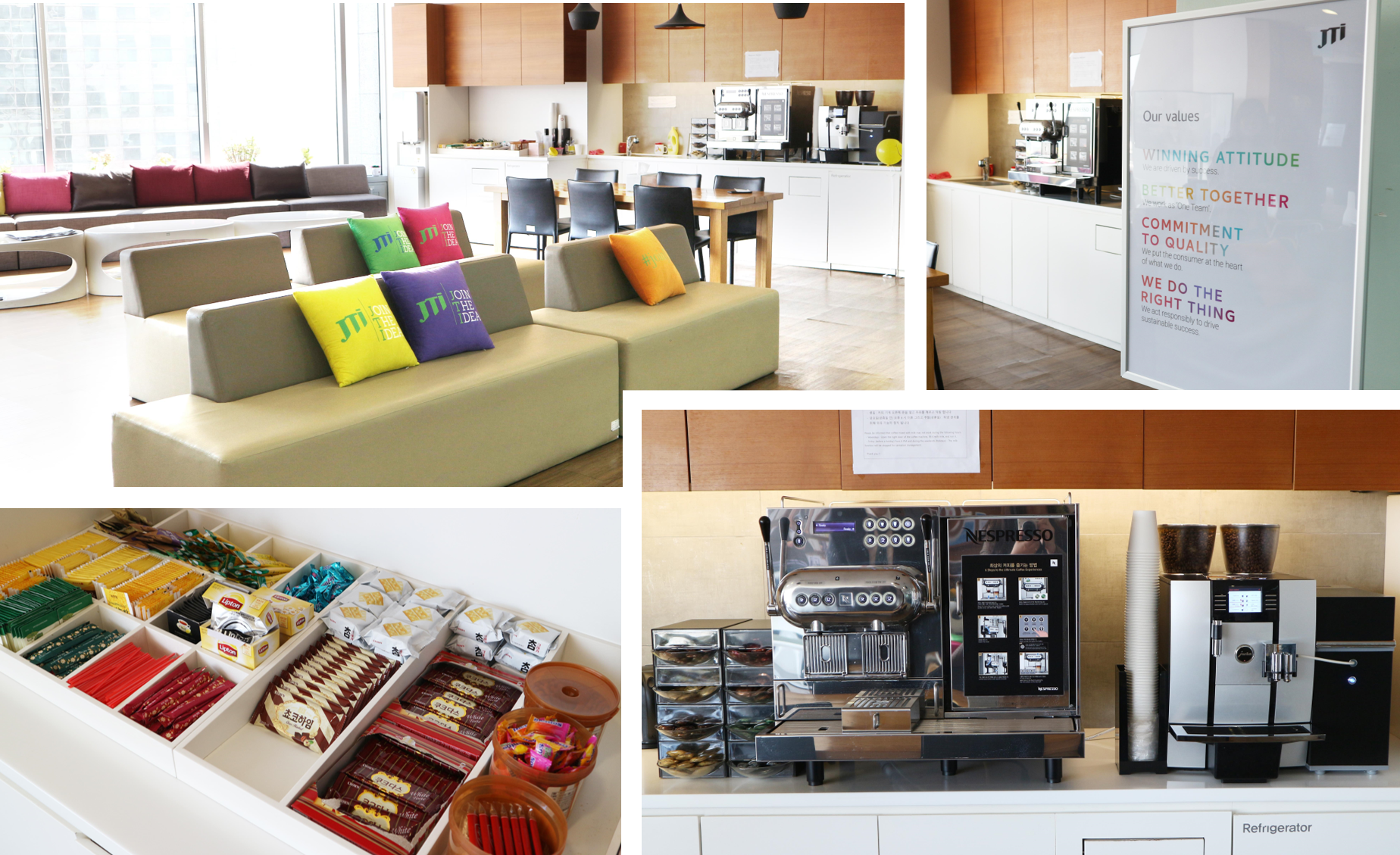 광화문역 근처에 위치한 JTI 코리아의 서울본사에서는 임직원들의 업무능률향상을 위한 라운지과 캔틴이 있으며, 이 곳에서 임직원들은 커피, 다과와 함께 담소를 나누며 휴식을 취할 수 있습니다.
