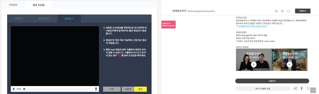 5) 최종적으로 영상 확인 후에 "지원하기" 버튼 클릭