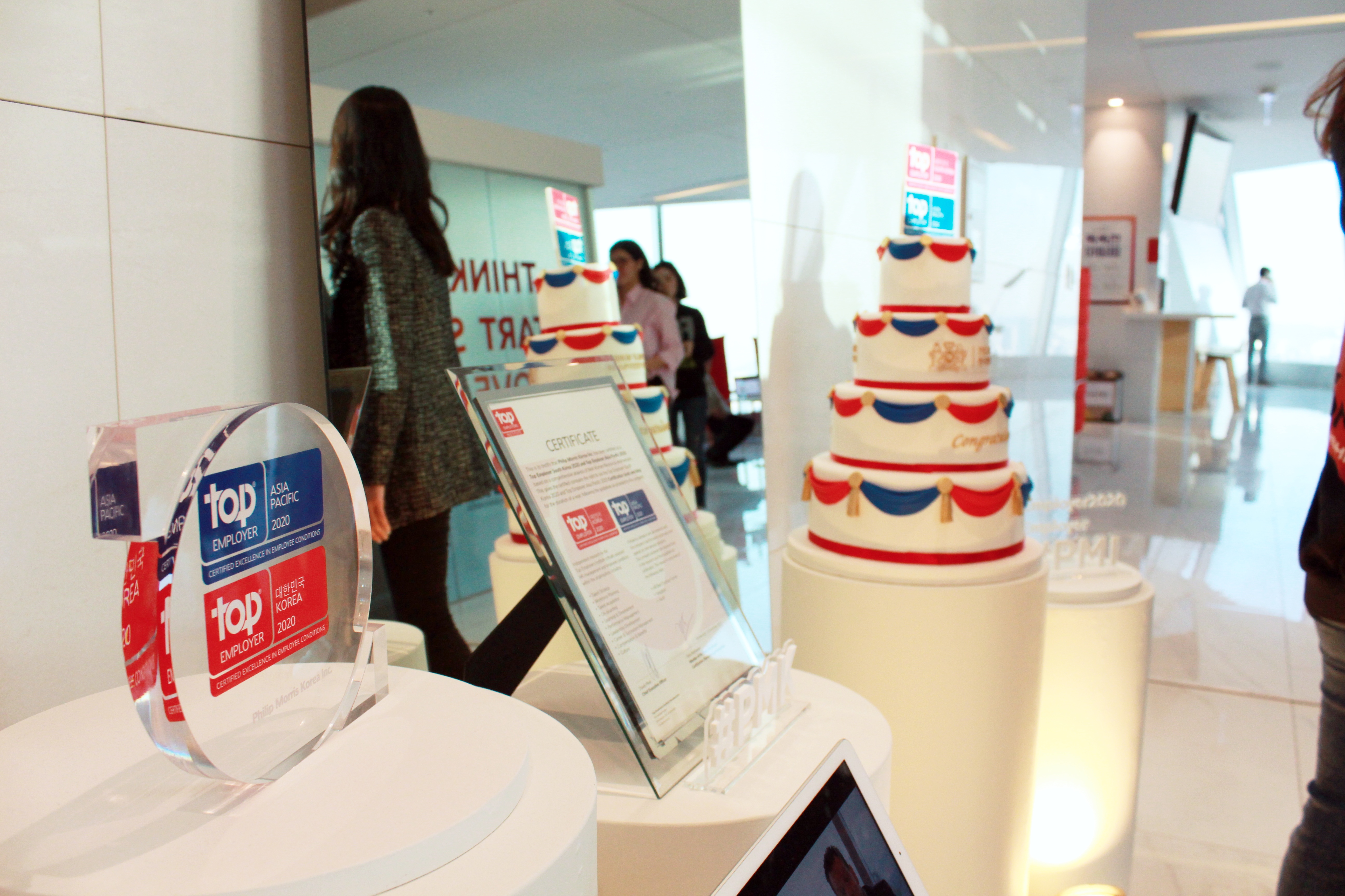 현재 한국필립모리스에는 약 1,100명의 임직원이 근무하고 있으며 모든 직원들이 최적의 업무환경에서 업무를 하는 동시에 개인의 커리어를 개발할 수 있는 글로벌 기업문화가 조성되어 있습니다. 이러한 노력으로 한국경제매거진에서 8년 연속 ‘일하기 좋은 기업’으로 선정되었습니다. 또한 올해는 공신력 있는 글로벌 기관인 우수고용협회 (Top Employers Institute) 로부터 최상의 업무환경과 기업문화를 바탕으로 한국 및 아시아에서 우수고용주 인증 (Top Employer Certification)을 획득하였습니다.