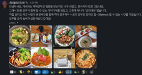 쪼이 재택근무를 하면 실제로 팀원들과 얼굴을 보며 소통하는 것이 아니다 보니 팀원분들과 가까워지는 데 더 많이 노력해야겠다고 생각했었습니다. 하지만 팀원분들이 적극적으로 랜선 회식, 팀 게임 플레이, 그리고 요리 대회 등 다양한 활동과 대화의 기회를 만들어 주셔서 가까워졌습니다🤭 반대로 재택근무에서 업무를 익히는 과정에서는 담당 사수분이 편안한 분위기를 만들어 주셔서 채팅이나 콜로 업무에 대해 쉽게 여쭤볼 수 있는 환경에서 큰 어려움을 느끼지 못했습니다 🙅♀️