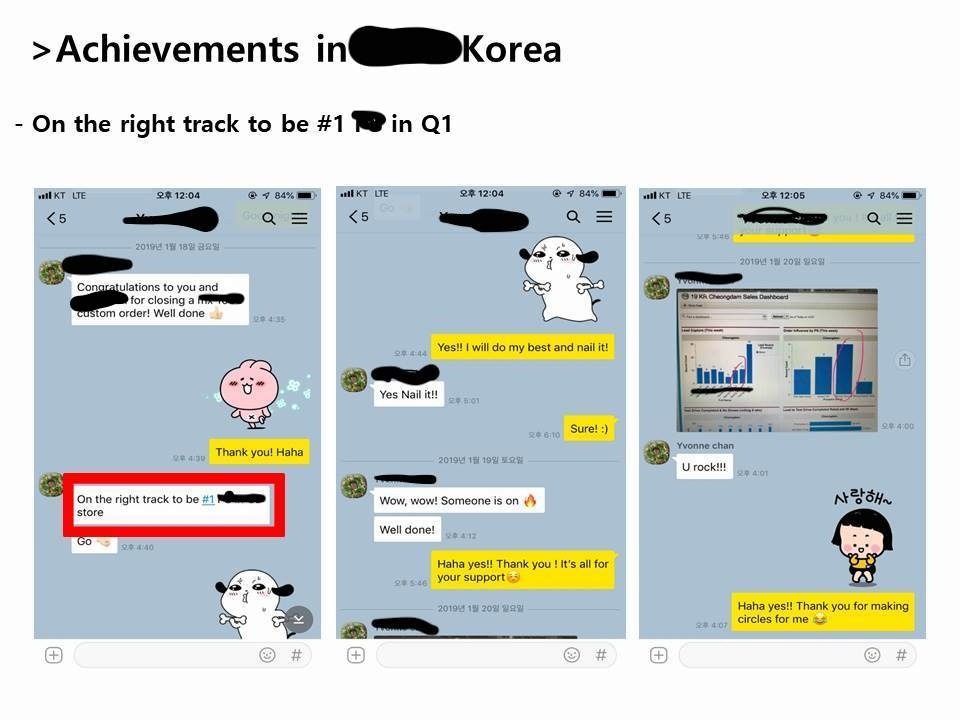 보스에게 다이렉트로 카톡을 통해 칭찬 받았던 것도 깨알처럼 어필하였다.