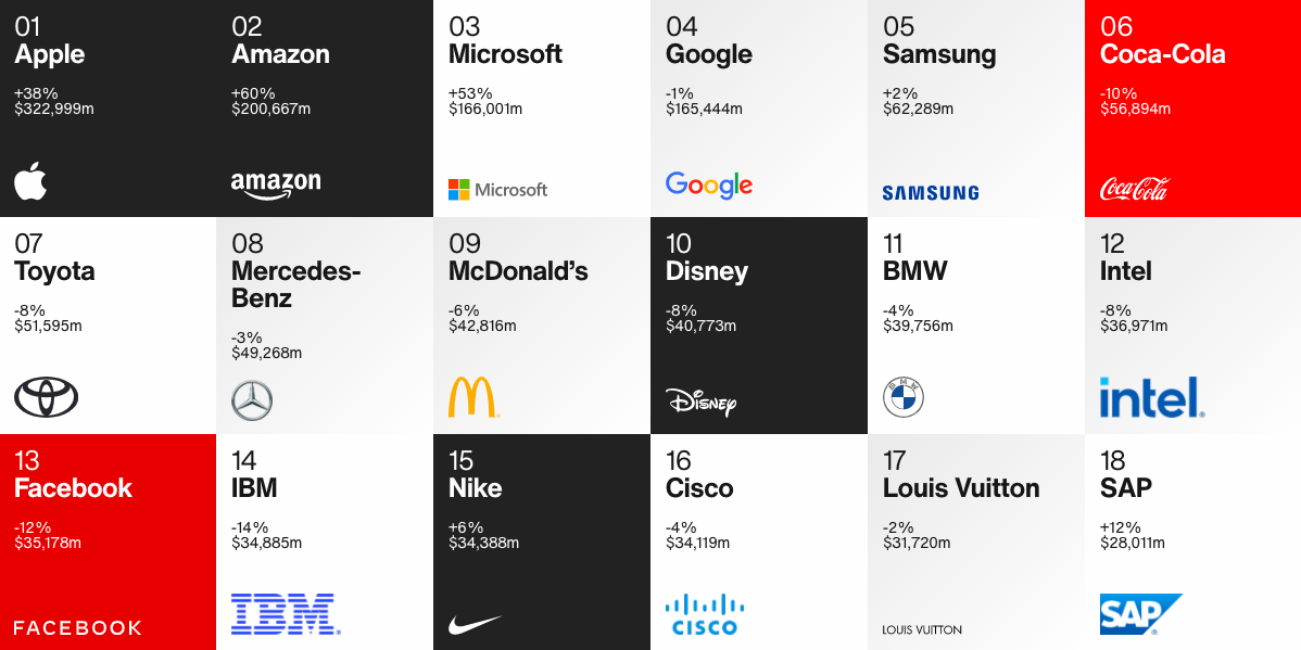 < Interbrand 2020 : 글로벌 브랜드 가치 순위 > (출처 : 구글 이미지)