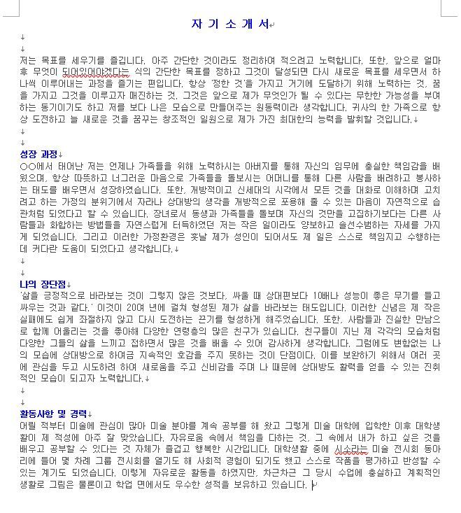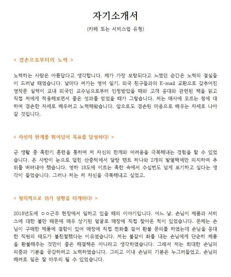 여러분의 자기소개서와 비교해보세요. 어떠한가요?