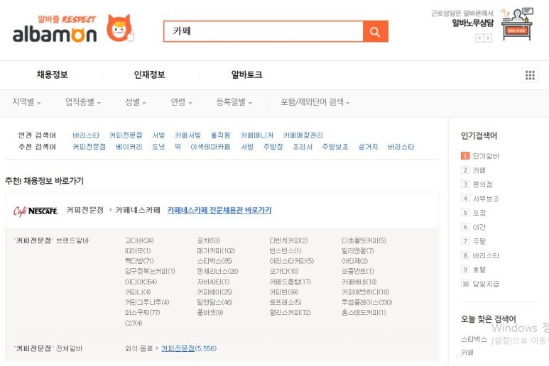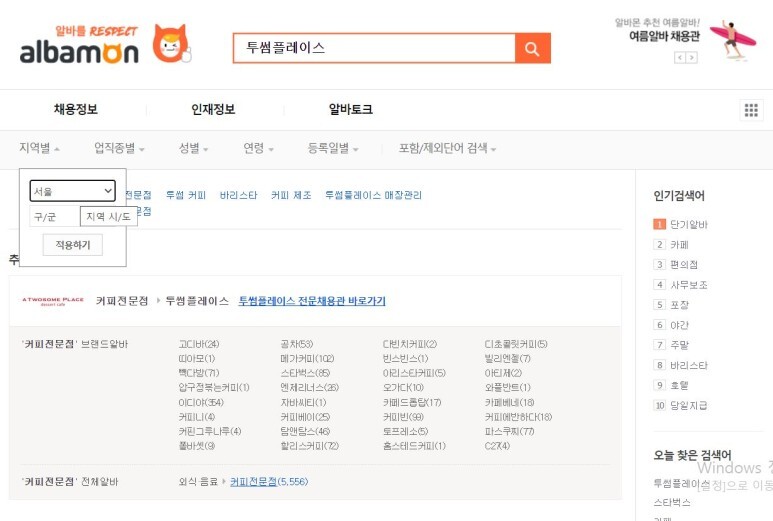 만약 지원하려는 분야가 '카페'라고 합시다. 그럼 '카페'라고 검색을 하면 되는 걸까요?
