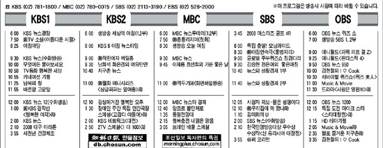 < TV 편성표 예시 > (출처 : 구글 이미지)