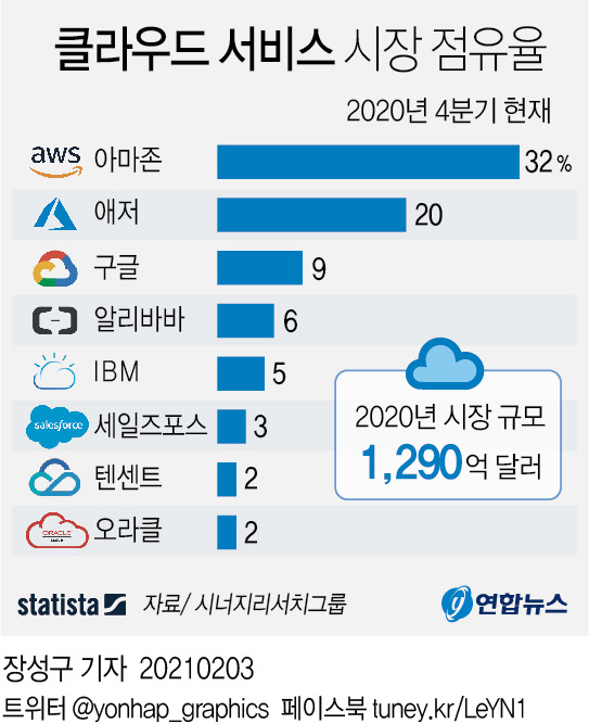 < 2020년 클라우드 시장 규모 > (출처 : 연합뉴스)