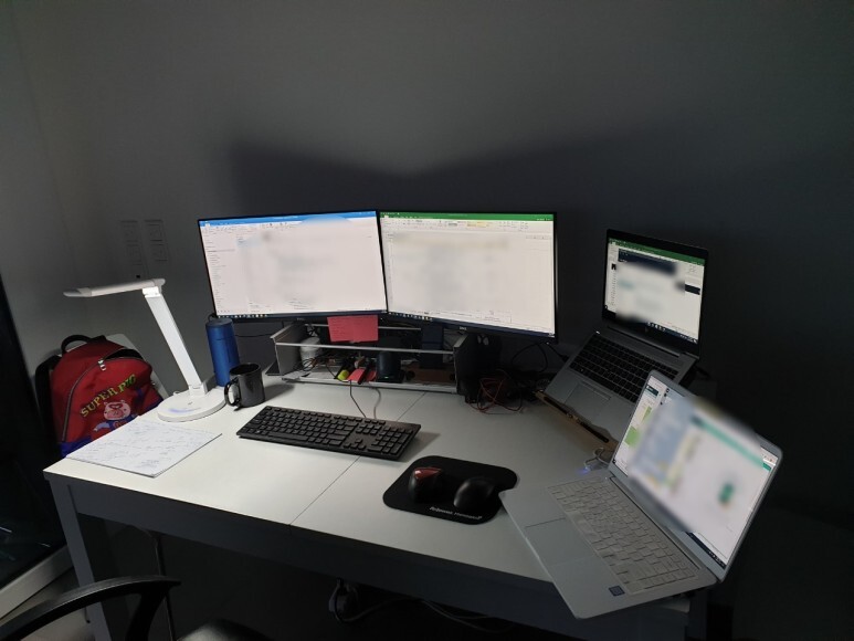 회사에서 재택근무를 지원하는 방안으로 듀얼 모니터 사용이 가능하도록 모니터 대여가 가능하기 때문에, 모니터도 두 대 빌려오고 나름대로의 쾌적한 업무 환경을 구성하는 데에는 성공했습니다.