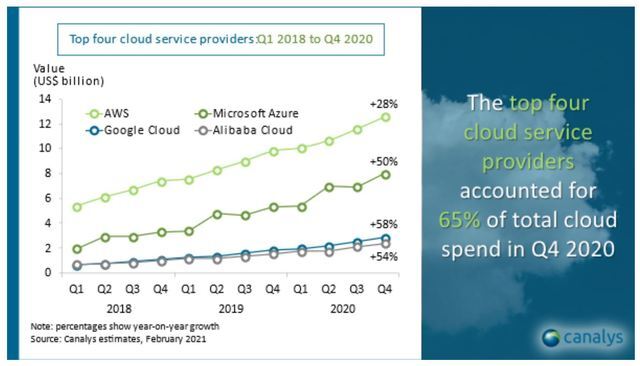 현재는 아마존의 웹 서비스(AWS)가 독보적 시장 1위이기는 하지만 MS가 지속해서 시장 점유율을 높여나가고 있다.