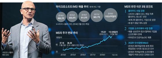 그렇지만 2014년 사티아 나델라를 CEO로 임명하면서부터 마이크로 소프트는 화려한 부활의 날갯짓을 시작했다.