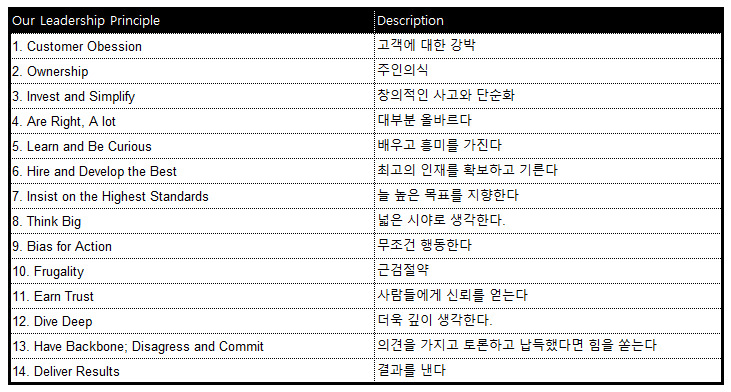 아마존이 창업부터 현재까지 성장해 올 수 있는 비결은 위에 적어놓은 5가지를 토대로 흔들림 없이 진행해왔기 때문이다. 구성원들과 업무를 할 때 많은 이해관계 속에서 갈등이 초래된다.