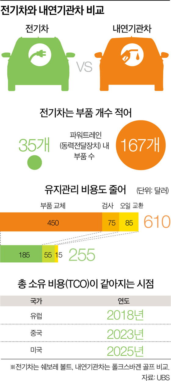 전기차의 부품수는 내연기관차의 약 40~50% 수준에 불과하다. 내장에도 여유가 있다. 가장 중요한 전기에너지도 풍부하다.