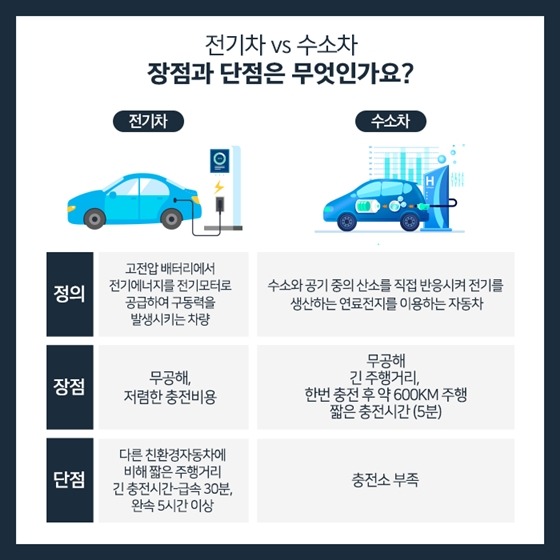 < 전기차와 수소차 비교표 > (출처 : 구글 이미지)