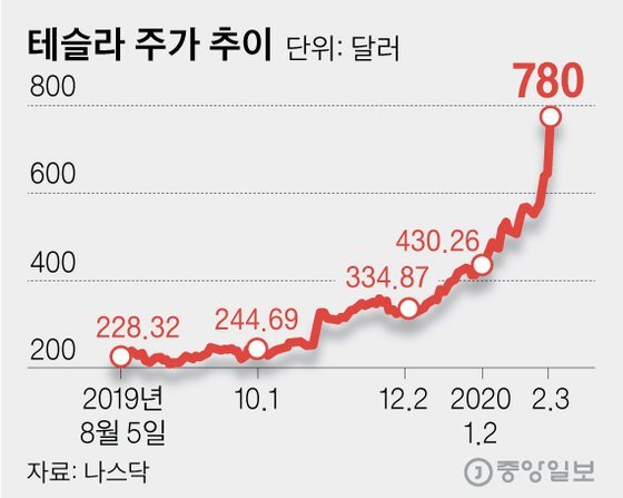 < 테슬라 주가 추이 > (출처 : 구글 이미지)