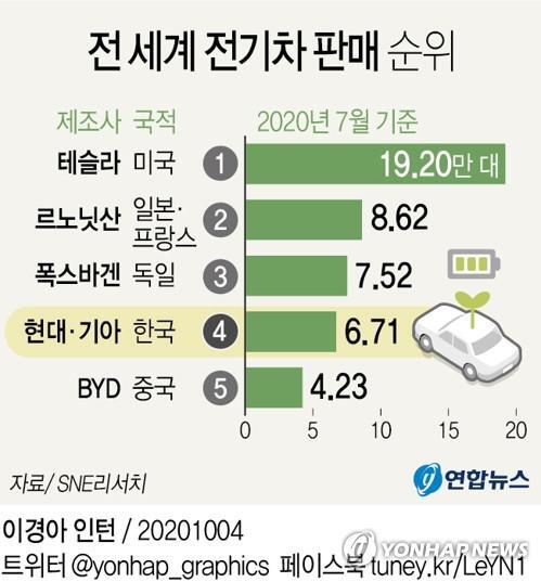 이를 고려했을 때에 테슬라가 세계 1위의 전기차 판매량을 보이고 있고 주목할 만한 것은 한국의 현대/기아 차가 전기자동차 시장에서 선전하고 있다는 것이다.