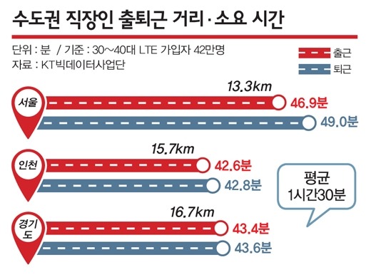 < 수도권 직장인 평균 출퇴근 시간 > (출처 : 구글 이미지)