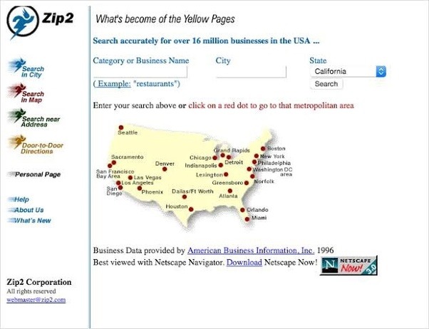 머스크는 유명한 벤처 자본가 스티브 저벳슨을 만나 투자 협력을 이끌어 내고 더 다양한 기업체들과 협업,180개 이상의 온라인 도시 안내 사이트를 운영하게 된다. 2000년대 초반에 미디어 관련 기업들은 온라인 콘텐츠를 확보할 목적으로 규모가 작은 콘텐츠 제공업체들을 앞다퉈 사들였다.