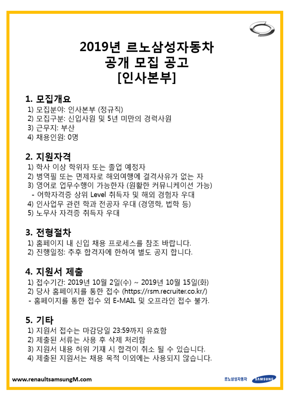 2019년 인사본부 신입사원 모집